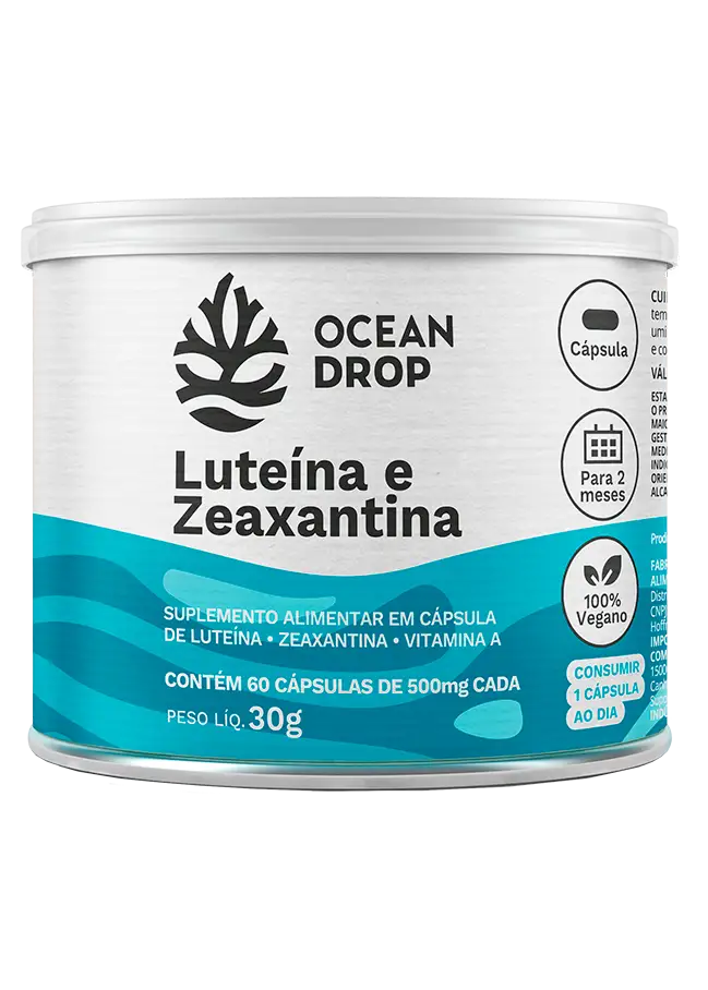 A Luteína e Zeaxantina Ocean Drop é um suplemento desenvolvido para auxiliar na saúde dos olhos e na proteção contra os danos causados pelos radicais livres. Esses carotenoides atuam diretamente na retina, contribuindo para a manutenção da visão e proteção contra luz azul.