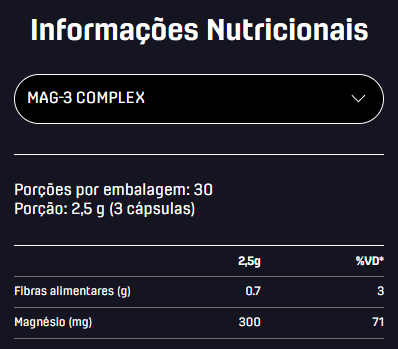 O Mag-3 Complex Dux Nutrition é um suplemento que combina três formas de magnésio altamente biodisponíveis: bisglicinato, malato e taurato. Essa combinação atua de forma complementar para auxiliar na saúde muscular, relaxamento, qualidade do sono e suporte ao metabolismo energético.